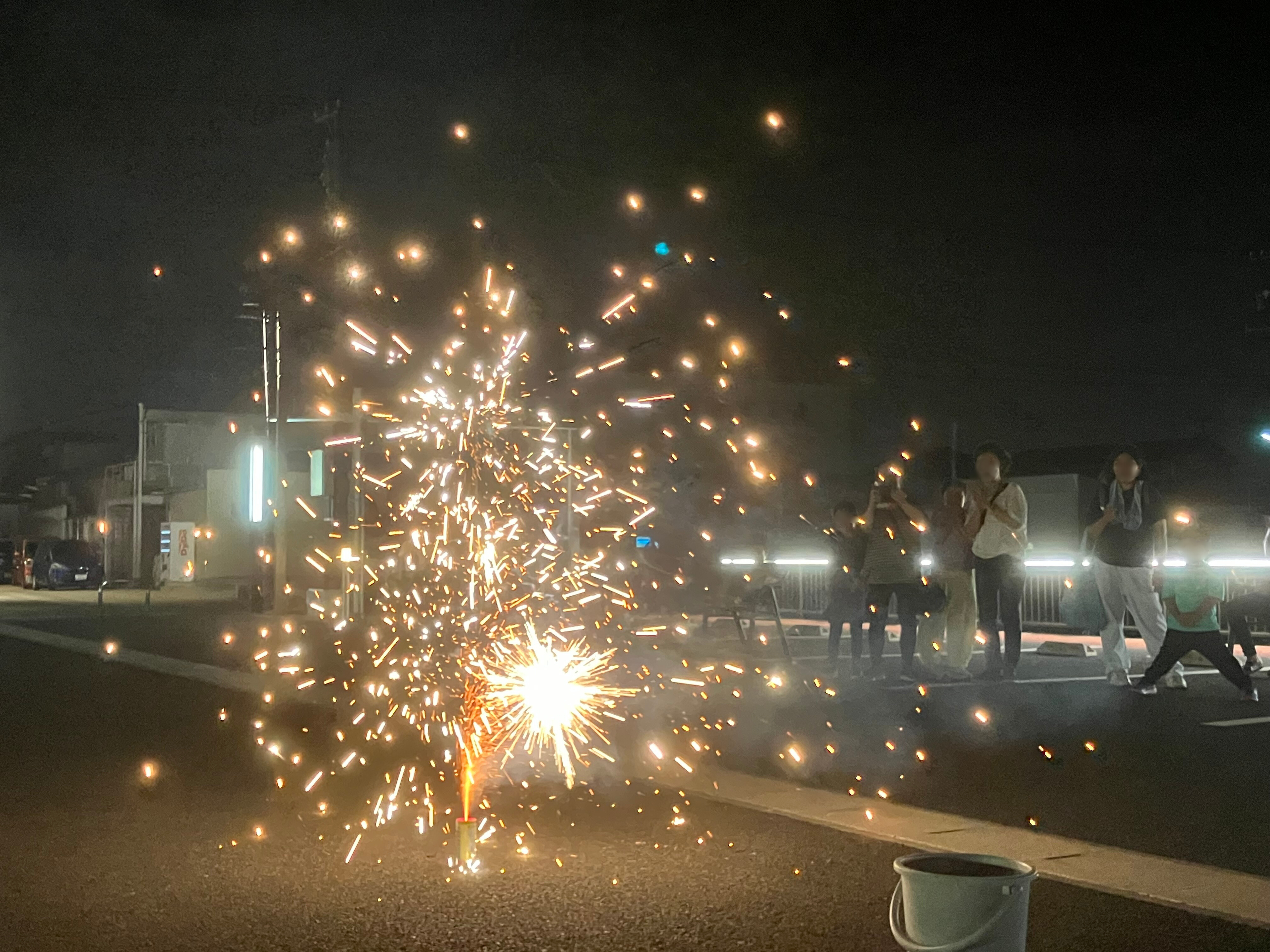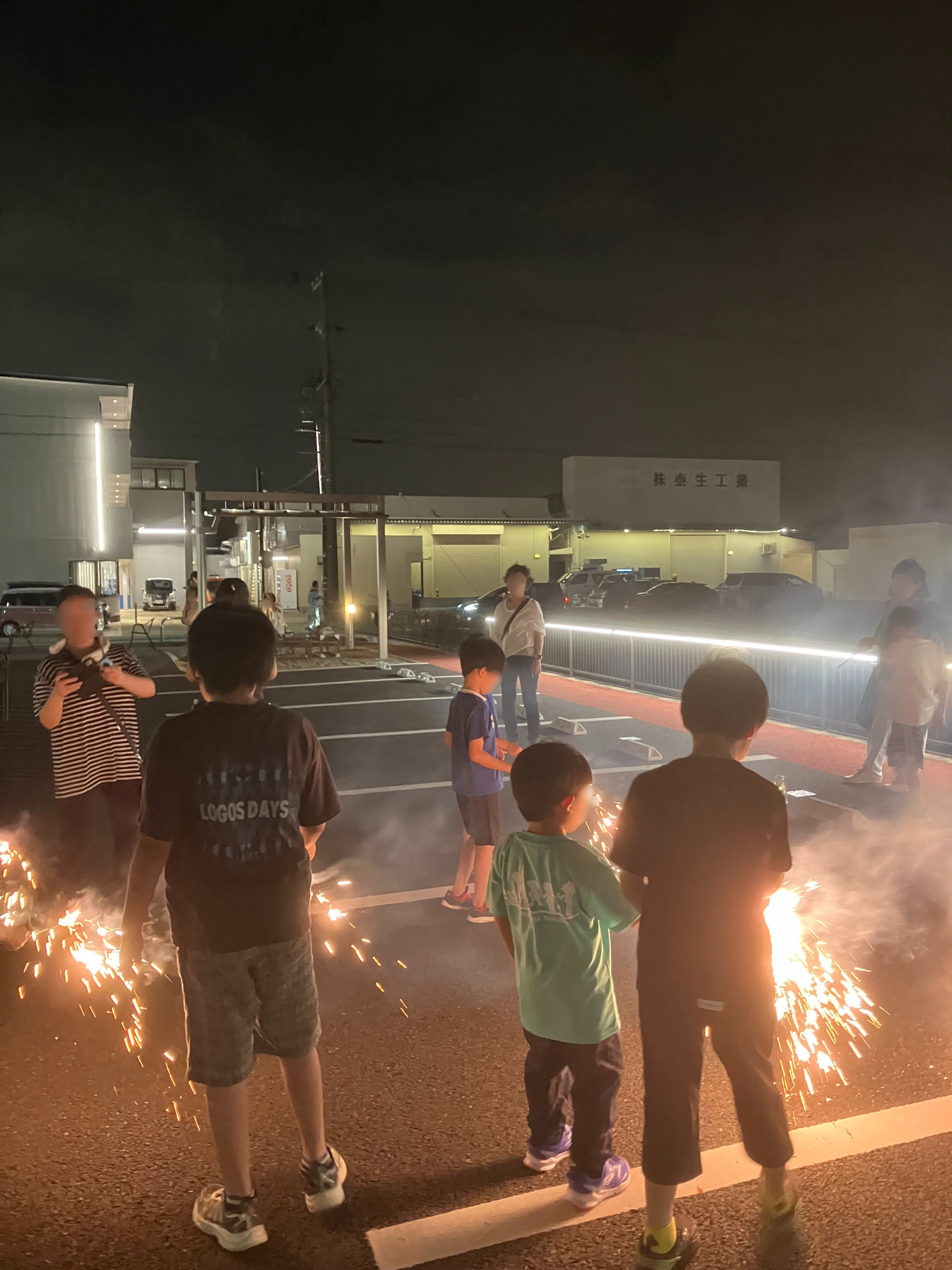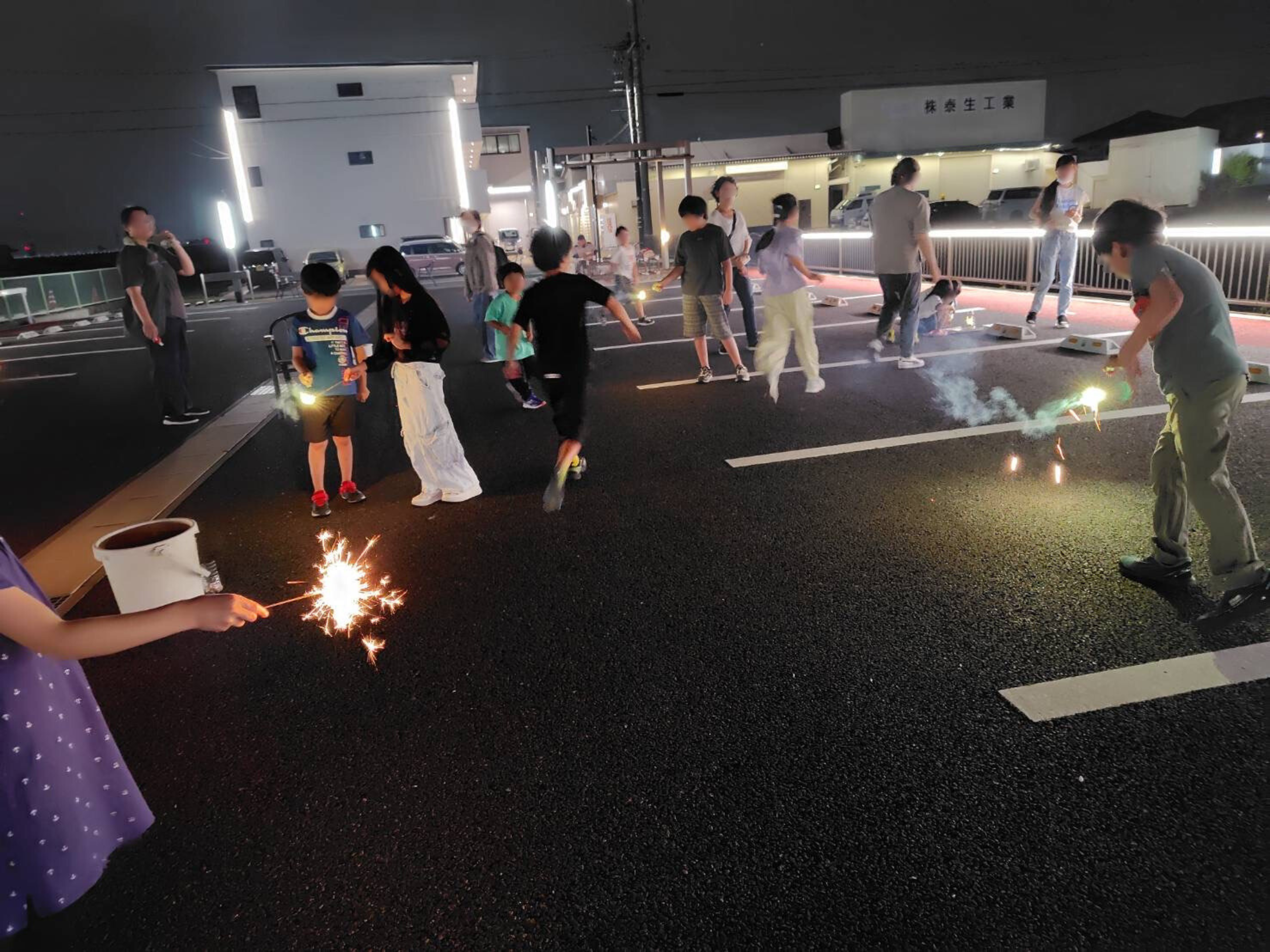 8月1日(金曜日)、弊社の駐車場を地域団体『津島の学童っ子を見守る会』にお貸しし、手持ち花火大会が開催されました。
